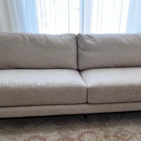 Beige tresists soffa. Köpt för 3 år sedan på trademax.