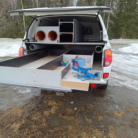 Lastutrymme med utdragbar lastplattform till pickup