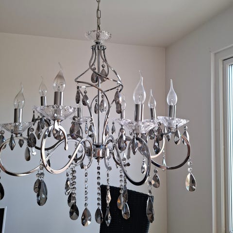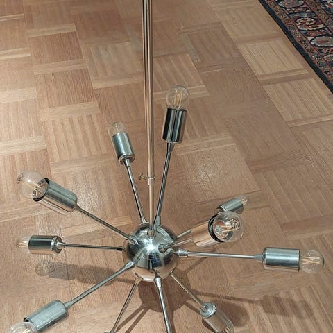Vikbar takspot för 8 lampor i borstad krom. I fint skick. Säljes pga flytt. Full längd 215 cm