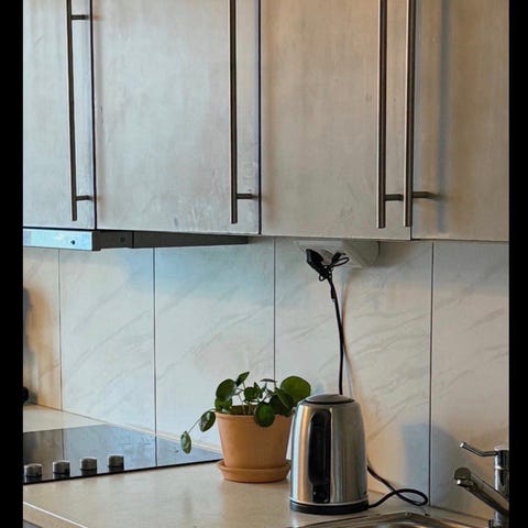 Ikea Utrusta tryck-och-öppna-beslag elektriskt i grå färg. Avsett för köksskåp eller lådor där man vill öppna genom att trycka lätt på fronten. Beslaget monteras på insidan av skåpet och ansluts till el. Passar för integrerade kökslösningar där man vill ha släta fronter utan handtag.