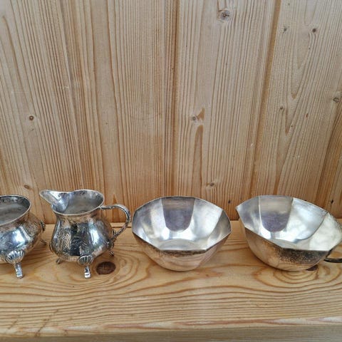Helt ny silver set 6 st glas och bricka i metall