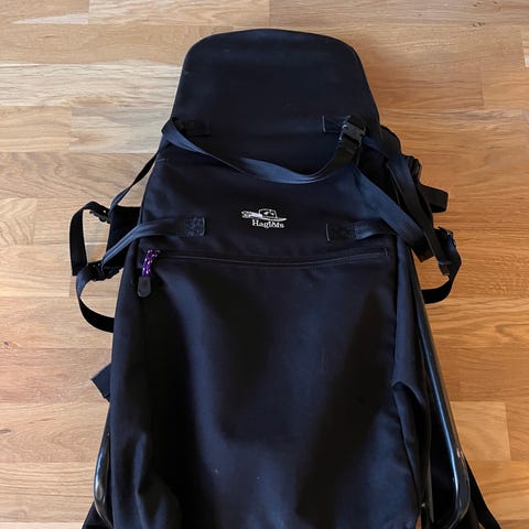 Perfekt för att ta med barnet ut på en vandring. Skön att bära och går mycket bra för barnet att sova i. Solskydd ingår.