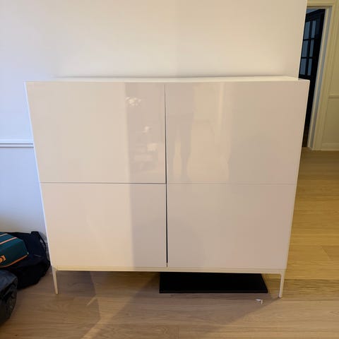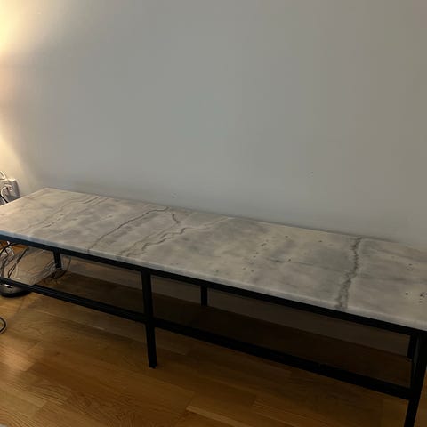 Skänk/bänk från Mio med marmor mönster och frostade glasskivor