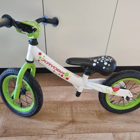 Skruvade ihop den o så ville barnbarnet inte ha den ,hon ville trampa på sin andra nya cykel ,därför blev den här inte använd tyvärr