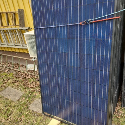 Vid rasering har MC4-kontakterna klippts av då det gick fortast och MC4-kontakter inte bör återanvändas. Kabeln har lämnats kvar i fullgod längd. Behöver bara klämmas på nya MC4-kontakter.