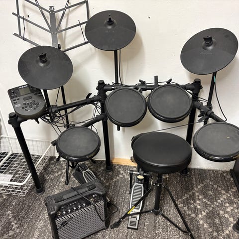 Alesis DM8 elektroniskt trumset. Fullt fungerande men med spår av användning. Passar för övning, inspelning eller replokal med möjlighet att spela med hörlurar eller koppla till förstärkare och ljudsystem.