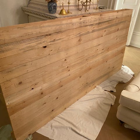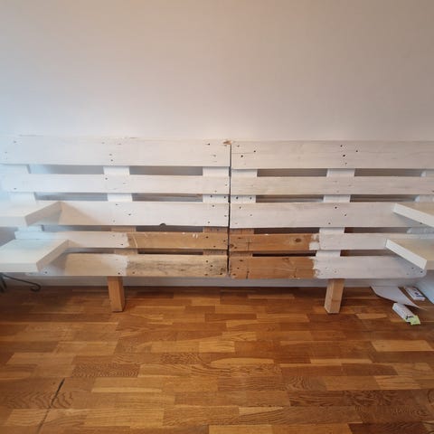 2 lastpallar som använts som sänggavel. Slipade och oljade för inomhusbruk.