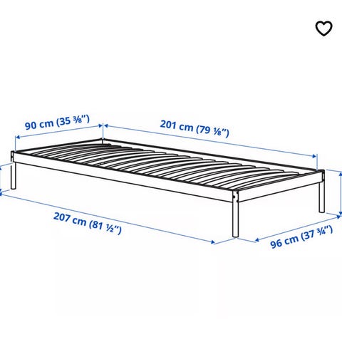 Lämplig storlek på madrass: 200 x 90 cm (L x B) (Madrass medföljer ej)