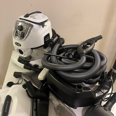Säljer 2023 1 st.dammsugare modell Kirby Avalir 2 som används sparsamt och väl vårdnad och den är konstruerad med den moderna användaren i åtanke och tar städning till en ny nivå. Den blåfärgade designen är inte bara elegant utan också funktionell,den är utrustad med ett avancerat Multi-Surface Shampoo System som inte bara schamponerar mattor utan även rengör trägolv, kakel och vinylgolv med lätthet. Systemets förenklade schampobassett i ett stycke är snabb att montera och har en lätt avtagbar avfallsbricka, vilket gör det enkelt att tömma smutsigt vatten.