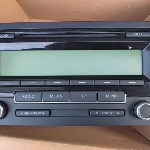 Fiat 500 Uconnect bilstereo med integrerad skärm i svart utförande. Enheten har fysiska knappar för radio, media, färddator (trip), telefon och appar samt volym- och menyreglage på sidorna av skärmen. På baksidan finns etikett från Continental/Mopar med modellbeteckning Fiat 312 VP2 ECE och Bluetooth-stöd. Avsedd för montering i Fiat 500 där denna typ av originalenhet används, med anslutningar enligt märkning på baksidan.