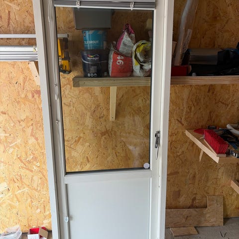 Stabil FD ytterdörr med glaspartier. Dörren är vit och har flera glasrutor i överdelen samt en slät nedre panel. Modellen är öppningsbar och avsedd som ytterdörr. Passar till bostad, förråd eller liknande där man önskar ljusinsläpp genom glasrutorna. Exakta mått och hängning framgår av märkningen på etiketten på karmen (Stabil FD Öppn bar BP01 HÖ 10-21-13). Inbyggd ventilation. Spröjs går att ta bort om man vill ha det så, det går även att sätta in lås så att man kan låsa både inifrån som utifrån, passande original handtag går att köpa till i handel för mellan 500-700kr. Den här dörren kostar ca:12 000 i handeln