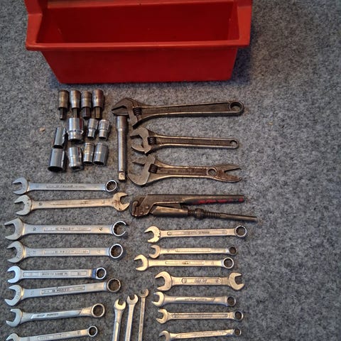 Black & Decker Workmate verktygslåda cirka 43 cm lång med tillhörande verktyg.
