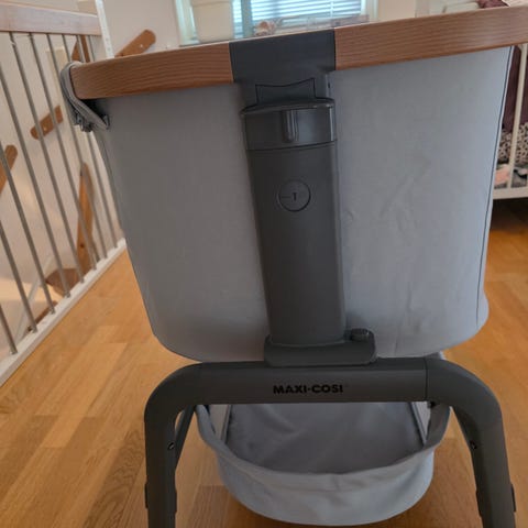 Sängen är nästan som ny (min bebis har bara sovit på sängen med en babynest) förutom att det finns ett litet hål på sidan (se bilder).