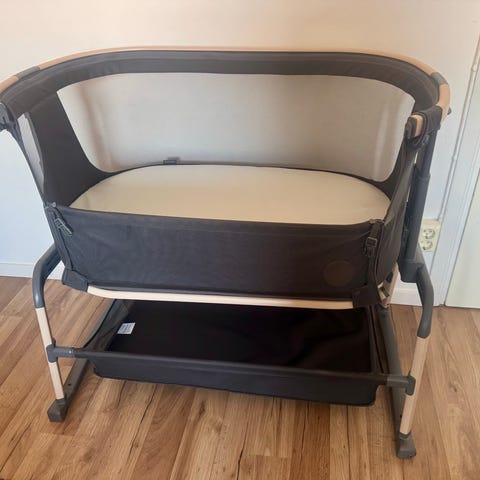 Säljer en Lionelo Theo bedside crib/sidosäng som även kan användas som en babysäng och resesäng. Inkluderar madrass och väska att bära sängen i.