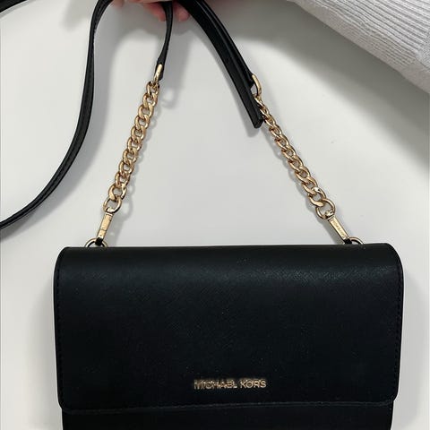 Michael Kors axelremsväska i svart saffiano-läder.