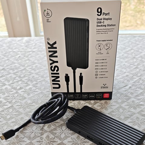 Säljer en helt ny Unisynk 10-port Dual Display USB-C Hub – fortfarande i obruten originalförpackning.