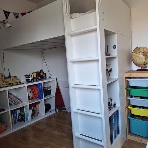 Matress is also IKEA and included. There is also a smart lighstrip attached to it. That will also come included.