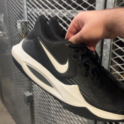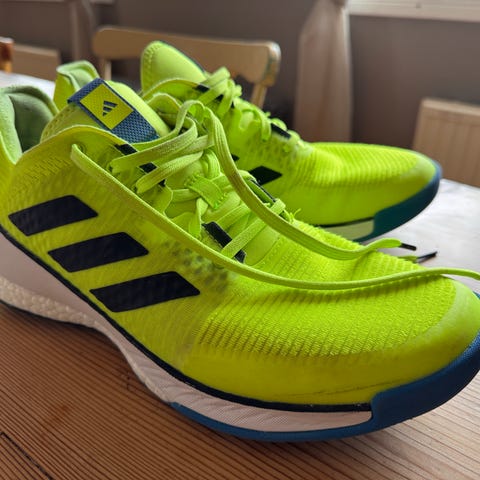 Adidas träningsskor i storlek 44. Modellen är i svart med vita detaljer och vit sula. Ovandelen är i textil/mesh med snörning framtill. Yttersulan är mönstrad för grepp vid träning och vardagsbruk. Skorna är märkta med "End Plastic Waste" på insidan. Passar för träning och annan fysisk aktivitet.