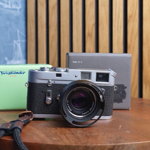 Denna annons ersätter min förra annons där jag sålde M3:an med en Elmar 50/2. Eftersom Elmar-objektivet inte gick att skjuta ihop pga en liten skruv, har jag valt att ersätta Elmar-objektivet med en Summitar 50/2 med M39-skruvgänga. En korrekt M39-M adapter som tar upp 50mm linjen i sökaren finns med.