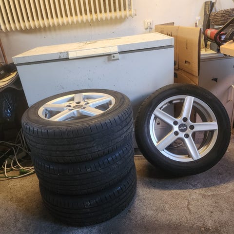 Säljer 4 st sommardäck med aluminiumfälgar.