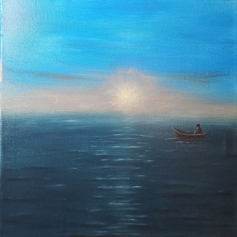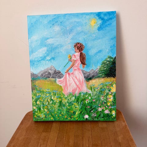 En stillsam tavla där en kvinna står vid vattnet i soluppgången, med en ros i handen. Runt henne spirar våren – men hon bär på en sorg.