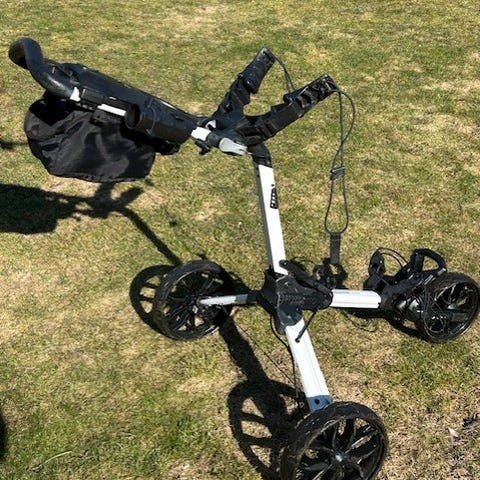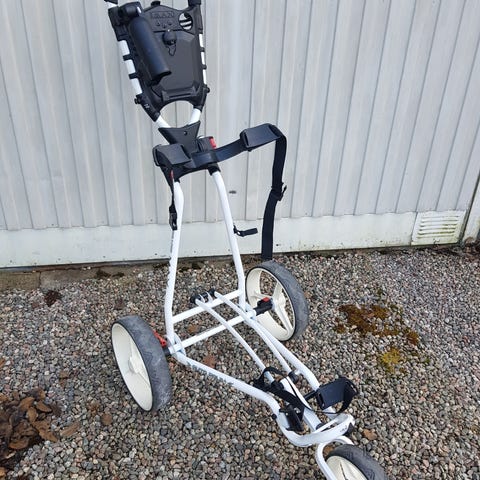 Ihopfällbar 3-hjulig Clickgear golf vagn i gott skick.