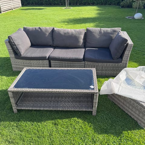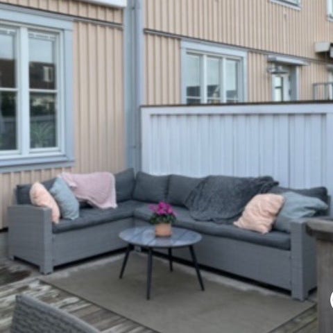 Trevlig utegrupp som är en kombinerad soff och matgrupp. Från Jysk.