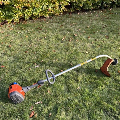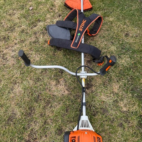 Stihl HL 100 häcksax med bensinmotor. Modellen är en stånghäcksax med långt skaft och justerbart häckaggregat för klippning på högre höjd eller svåråtkomliga ställen. Maskinen har tvåtaktsmotor och drivs med bensinblandning. Skyddskåpa för svärdet ingår enligt bild. Den startar lätt och går bra.