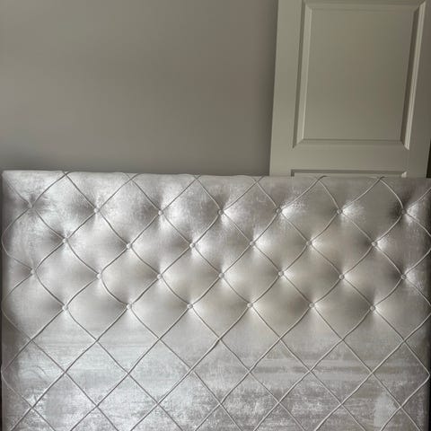 Sänggavel av en gammal soffa, passar utmärkt till 160cm alt 2x80cm breda madrasser. Vitmålad.