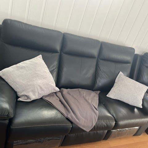 Säljer min supersköna fina soffa i konstläder med recleinerfunktion.