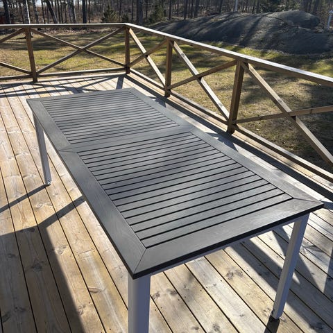 Två matbord för utomhusbruk till altanen. Går att placera tillsammans eller som långbord.