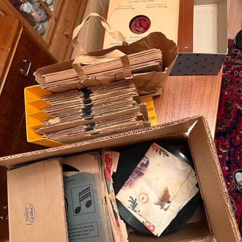 Många skivor,fanns i hus jag köpt,finns intresse så hörs vi,allt eller inget
