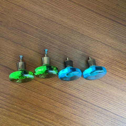 2 stycken retro 1960-tal glasbeslag/knoppar.