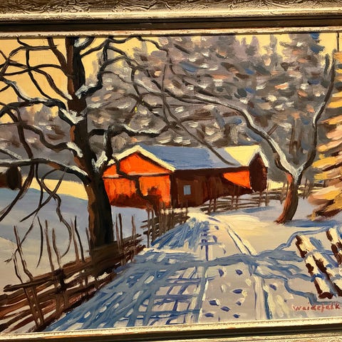 Jättefin tavla - Olja på duk av Carl Einar Fredriksson (1887-1964). Konstnären studerade vid Konstakademien 1913-1917 för Althin och Wilhelmson. Han har rest i England och Frankrike. Fredriksson har målat landskap från Norrland, Stockholm, Värmland och Karlstad. Representerad i Karlstads museum . Säljes i befintlig skick. Rammåtet - 77x59 cm