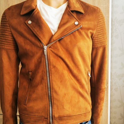Jackan är brun/grön i manchestertyg med lätt foder. Fint fall och sköna fickor!