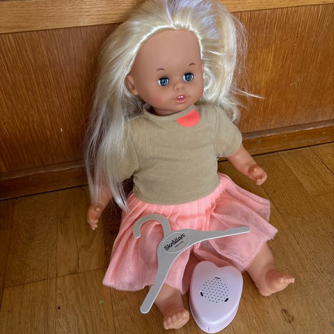 Till taldockan Skrållan finns många roliga tillbehör så att hon kan följa med på spännande äventyr, bland annat denna fina rosa cykelhjälm. Passar dockor 45 cm.
