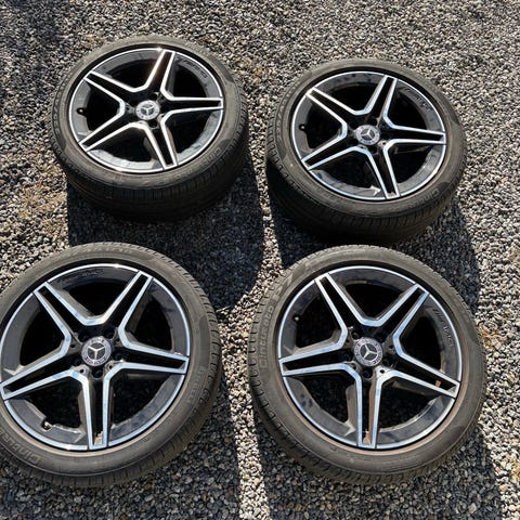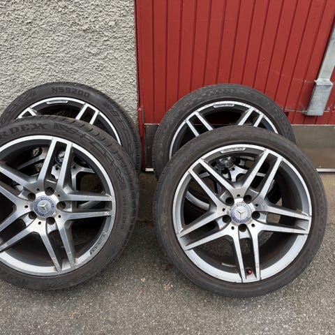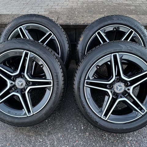 Som rubriken lyder så säljer jag 4 stycken svarta AMG fälgar med dimensionerna 225/45 R18 med bultmönster 5x112, som suttit på en Mercedes A-klass W177 2020. Fälgarna passar även andra modeller som tex. CLA, C-klass mm. Fälgarna är i bra skick men det finns någon minimal skada (se bilder) samt att framdäcken börjar bli slut. Skickar även med svarta original låsbultar från Mercedes