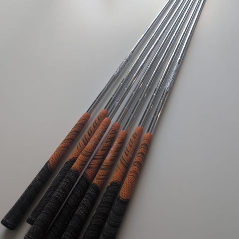 6-9 + pitch ,43,49 gr. Skaft, Mitsubishi chemical Fubuki MV LR50A. Det är ett seniorskaft och mycket bra klubbor för golfare med lite lägre svinghastighet. Nr 8 är en ny klubba och nr 7 har ett litet märke på undersidan som bilden visar. Bor du i Gbg kan du provslå klubborna.