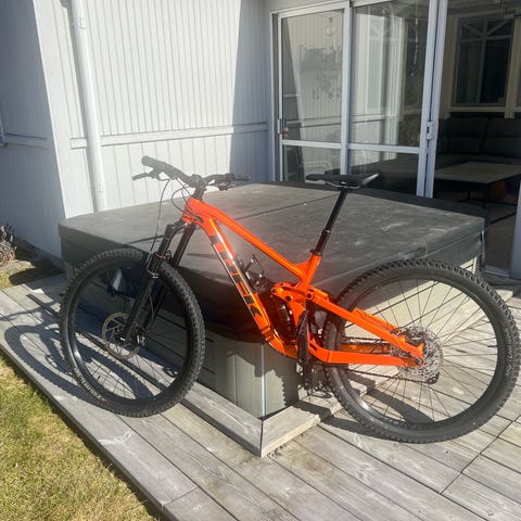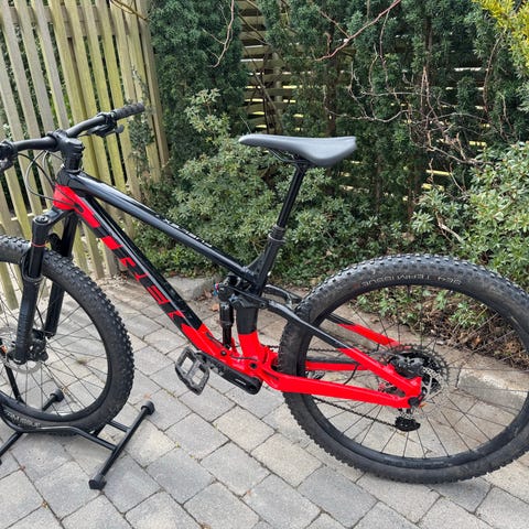 Trek heldämpad mountainbike, ramstorlek XL och 29" hjul. 120mm slaglängd fram och bak. Cykeln har rullat Cykelvasan två gånger och sen ett 10-tal mil utöver det. Cykeln är princip i nyskick, minus lite repor på ramen från ett spännband vid transport.
