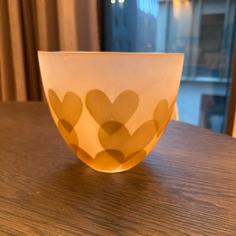 Vas i glas med beige ton och marmorerat mönster. Passar för snittblommor, torkade växter eller som dekorativ inredningsdetalj. Formen är lätt utsvängd upptill med rundad botten och slät insida.