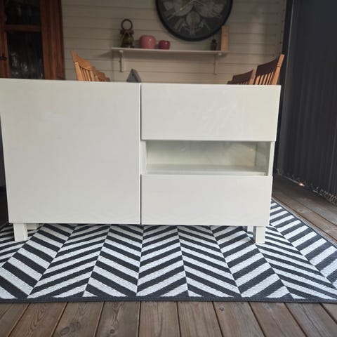 Bestå hylla med högglans skåpsluckor