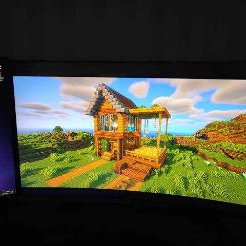 Stor 32 tums välvd bildskärm som har en upplösning på 1920 x 1080 pixlar och uppdateringsfrekvens 60 Hz.