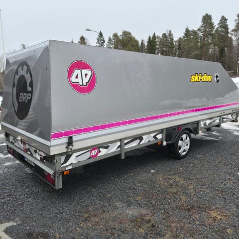 -Ev bytes mot större släpvagn med kåpa.