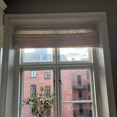 2 st hissgardiner vita med Marrakesh mönster i grått. 5 st tillhörande kuddar 3 vita 2 gråa från Jotex.