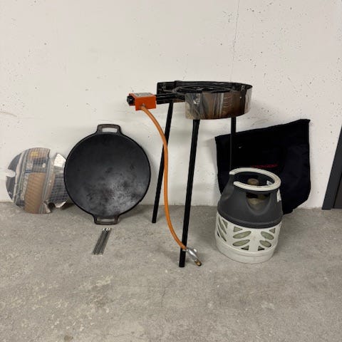 2 lågig brännare med regulator + murrikka stekhäll. Med vindskydd.
