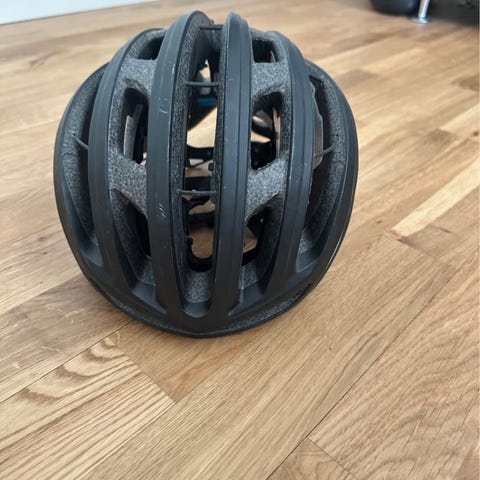 Met Terranova cykelhjälm i storlek S. Hjälmen är svart och har flera ventilationsöppningar samt justerbart spännsystem i nacken. Utrustad med hakrem med snabbspänne. Modellen är avsedd för cykling, exempelvis stig- och terrängcykling. Ytterskal i hårdplast med stötdämpande innerskal i EPS-skum. På insidan finns etikett med modellbeteckning M121 Terranova och CE-märkning enligt gällande säkerhetsstandard för cykelhjälmar.