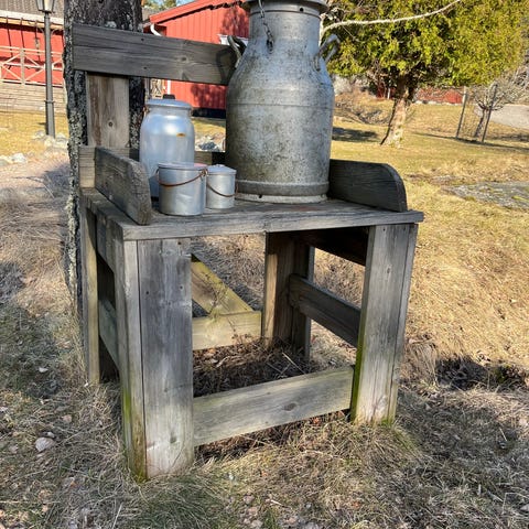 3 gamla mjölkkrukor att använda som kuriosa, i trädgården osv. De har använts utomhus och är ganska rostiga. Volym 5-10 liter. Priset är för alla 3.