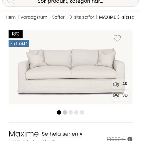 Kan du inte vänta i 8 veckor på en ny soffa så säljer jag denna MELIMELI Frances 3-sitssoffa i färgen off white. Soffan är helt ny och inte använd och säljer den pga för stor för min lägenhet.