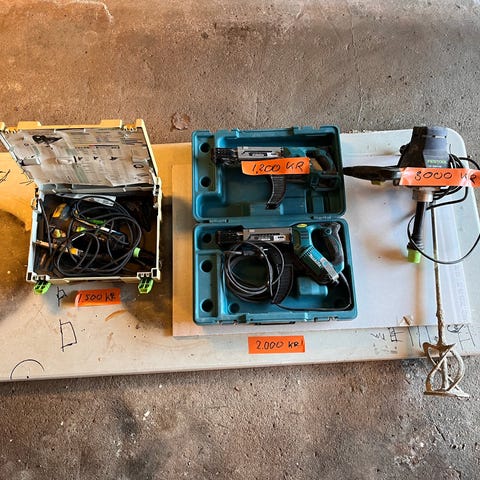 Vinkelslipar, borrmaskiner, såg. Vinkelsåg.