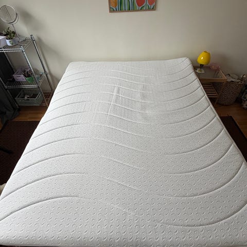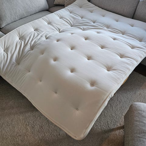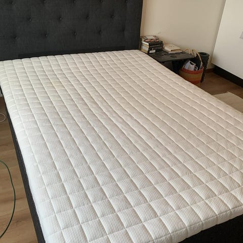 Jysk Wellpur bäddmadrass i vitt överdrag.